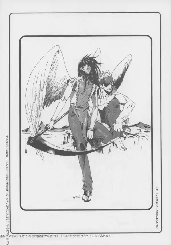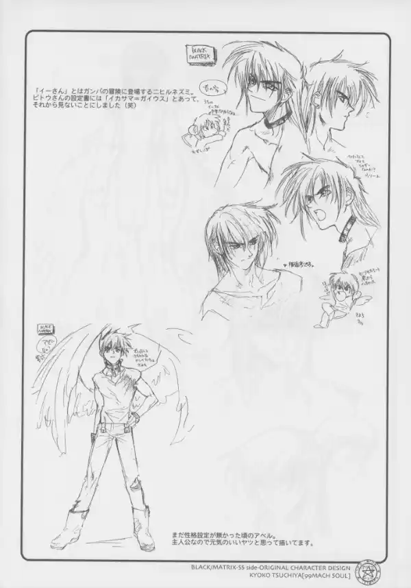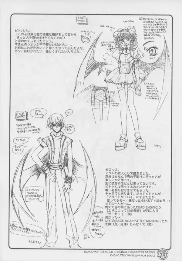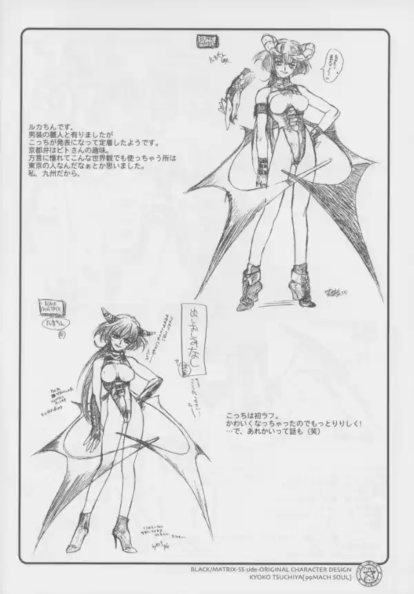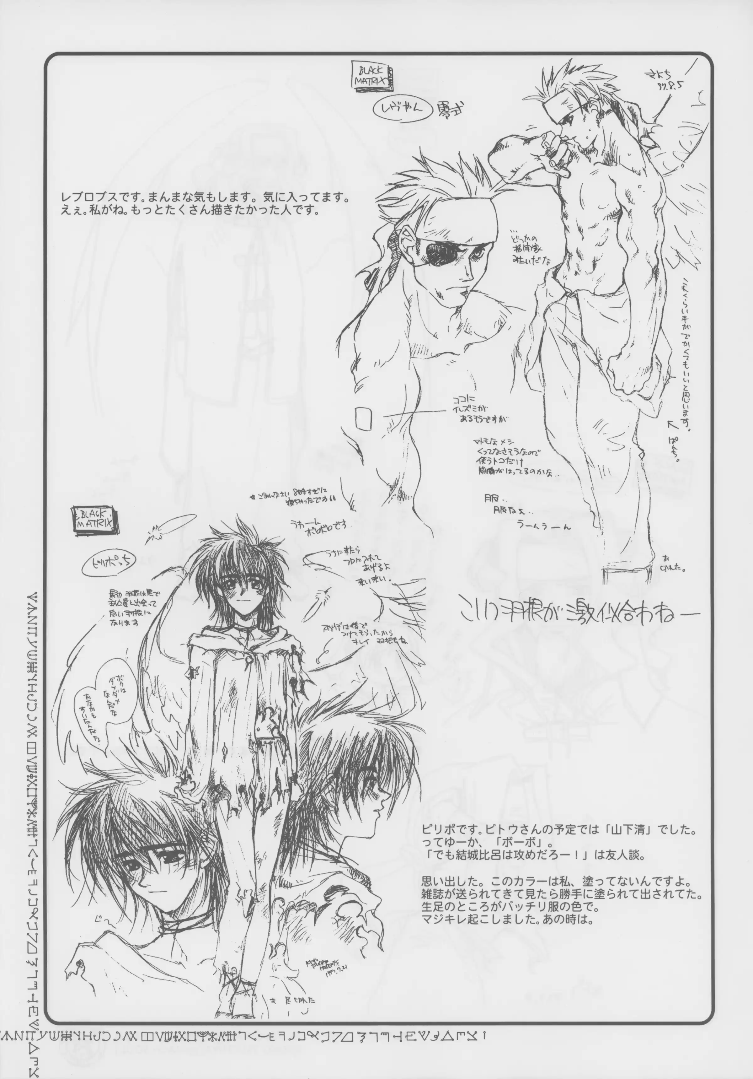 The Luka above was intended to be another magazine cover, but it ended up being the cover for the second printing of Black Matrix for Sega Saturn. You might notice this coloured version isn't in this doujin; that was published as part of the Kyoko Tsuchiya art book, Soul Driver 2000, nearly two years later.