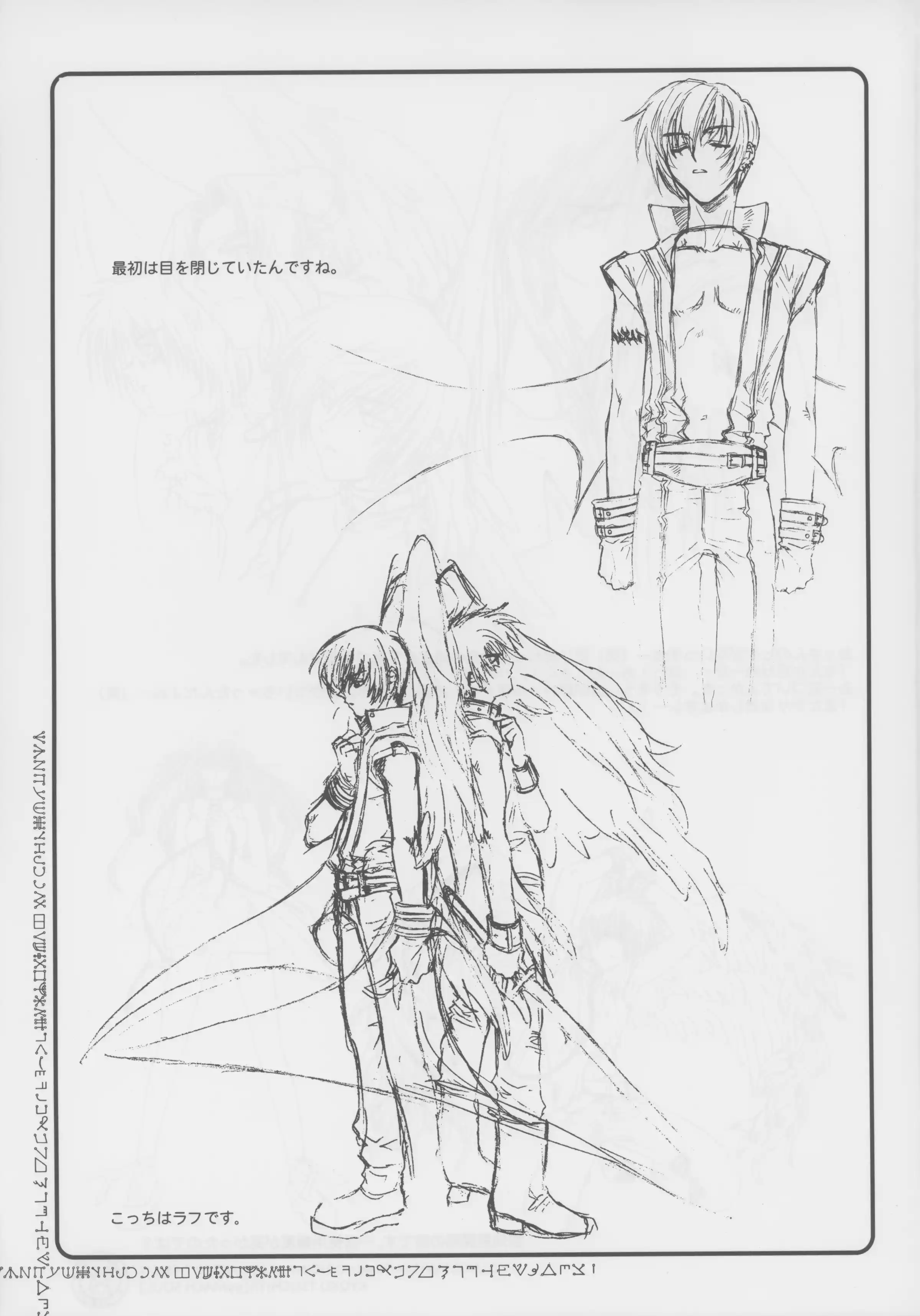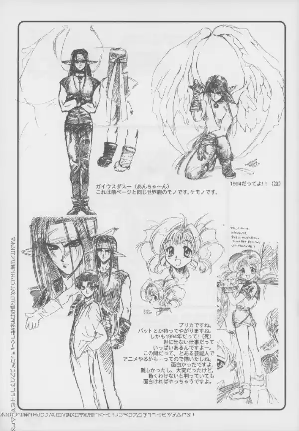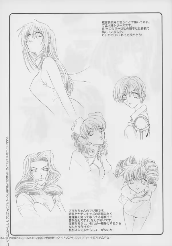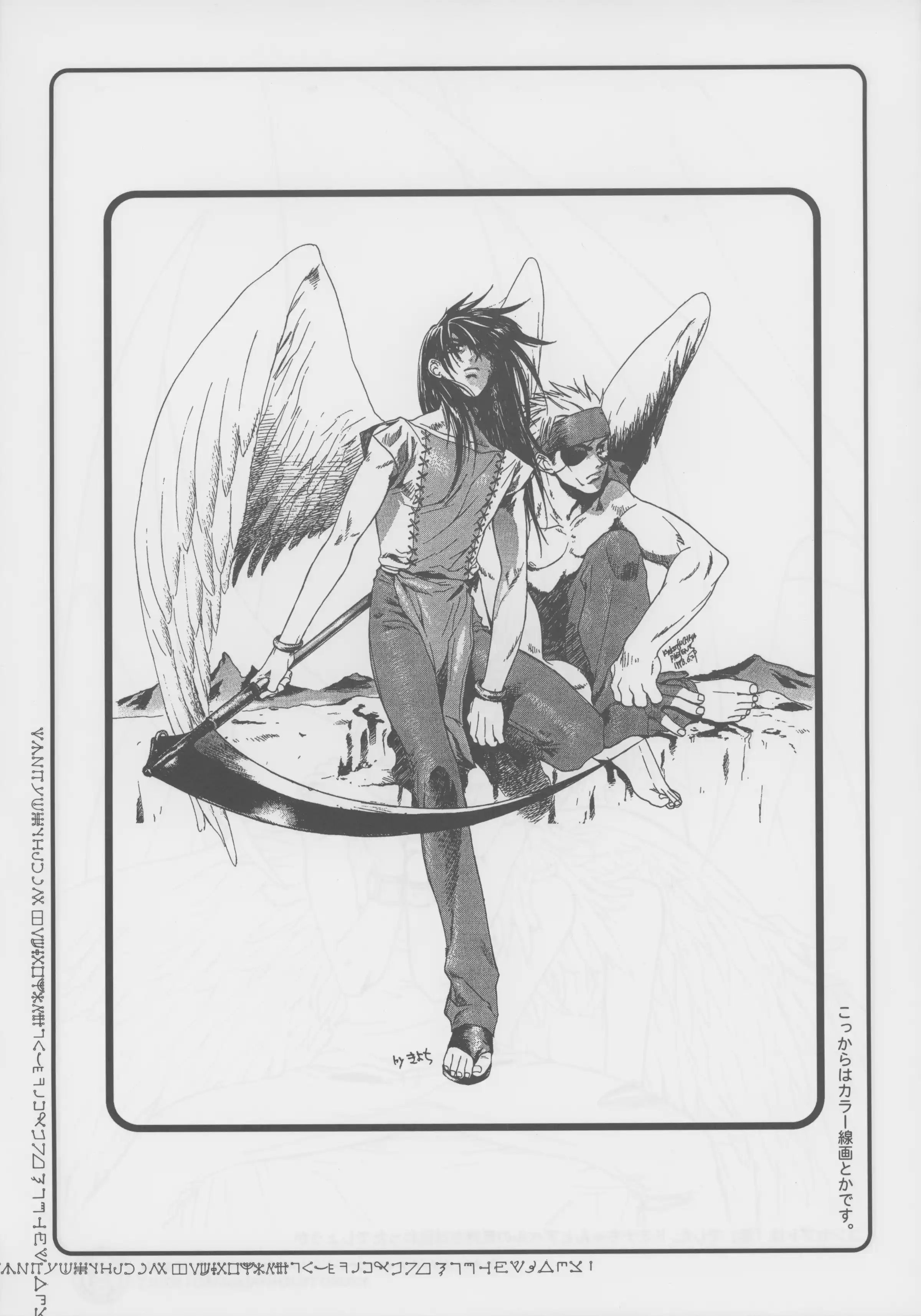 The Luka above was intended to be another magazine cover, but it ended up being the cover for the second printing of Black Matrix for Sega Saturn. You might notice this coloured version isn't in this doujin; that was published as part of the Kyoko Tsuchiya art book, Soul Driver 2000, nearly two years later.