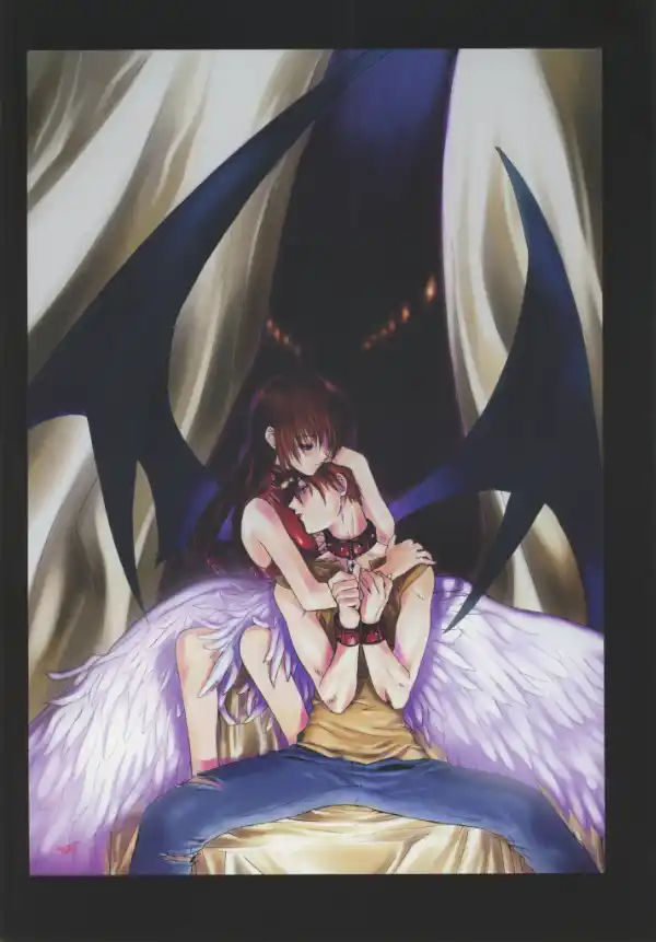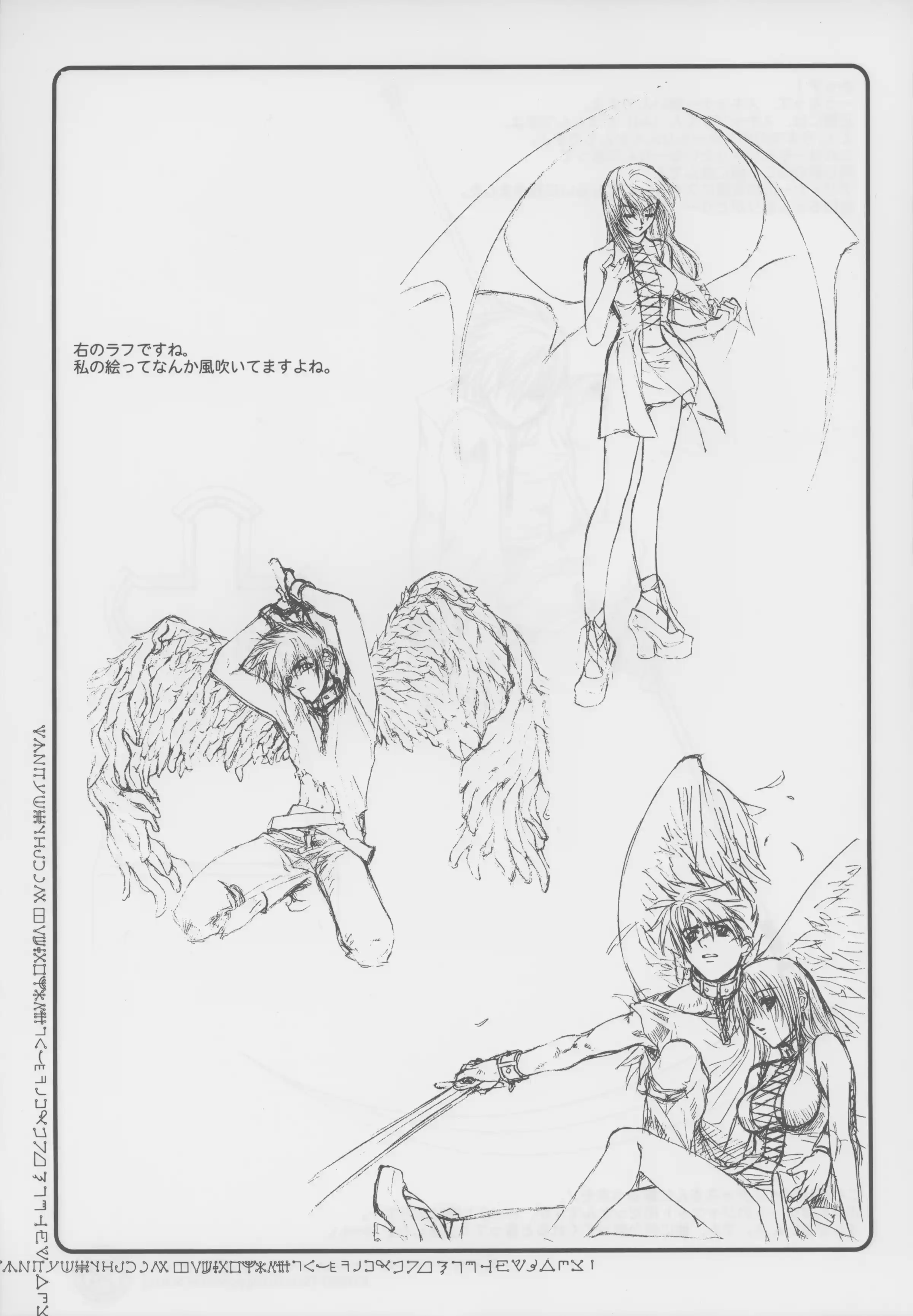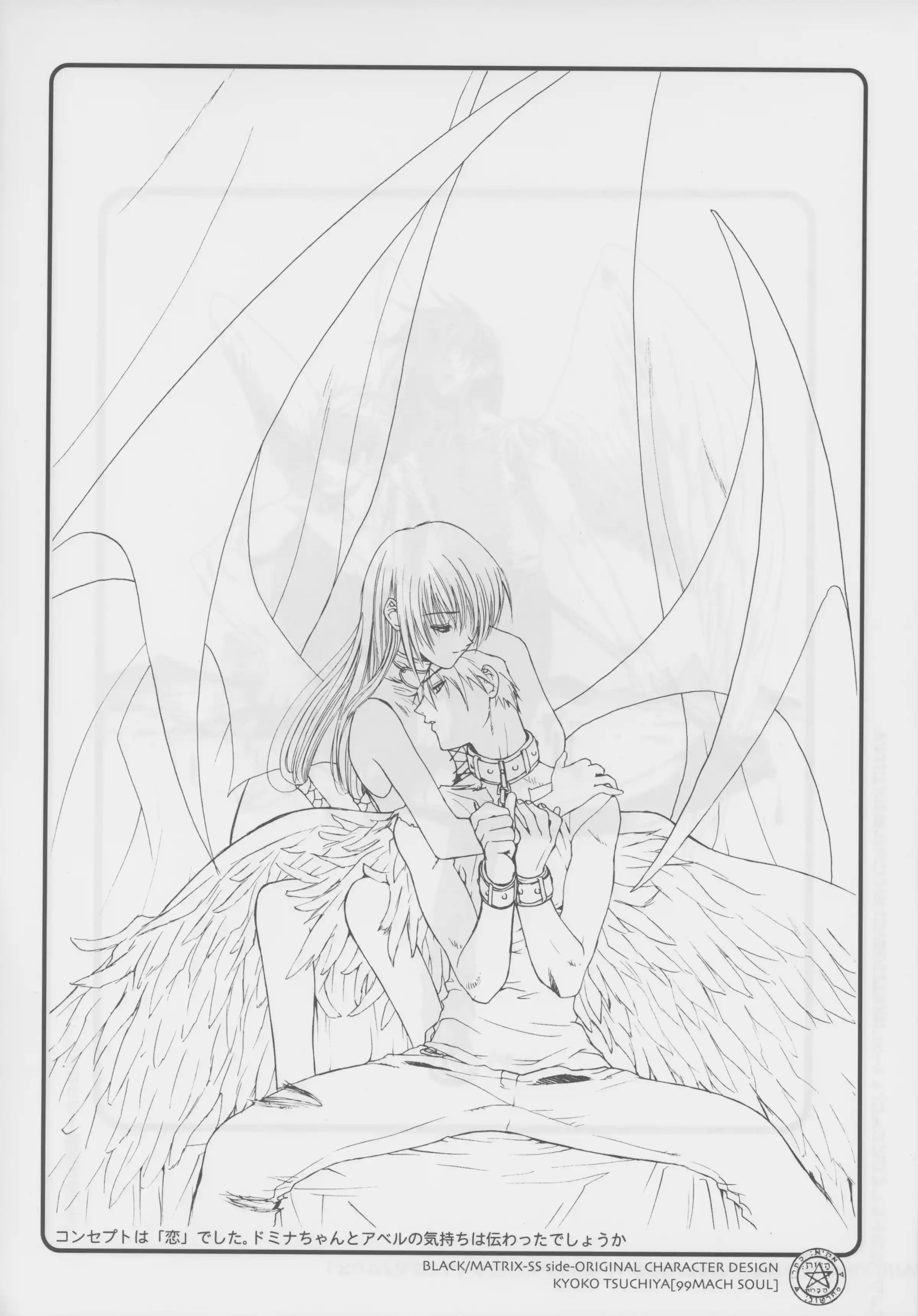 Line art for the initial cover art, and the key promo visual announcing Black Matrix. Tsuchiya remarks that she forgot to add Domina's wings, and added that detail in later.
