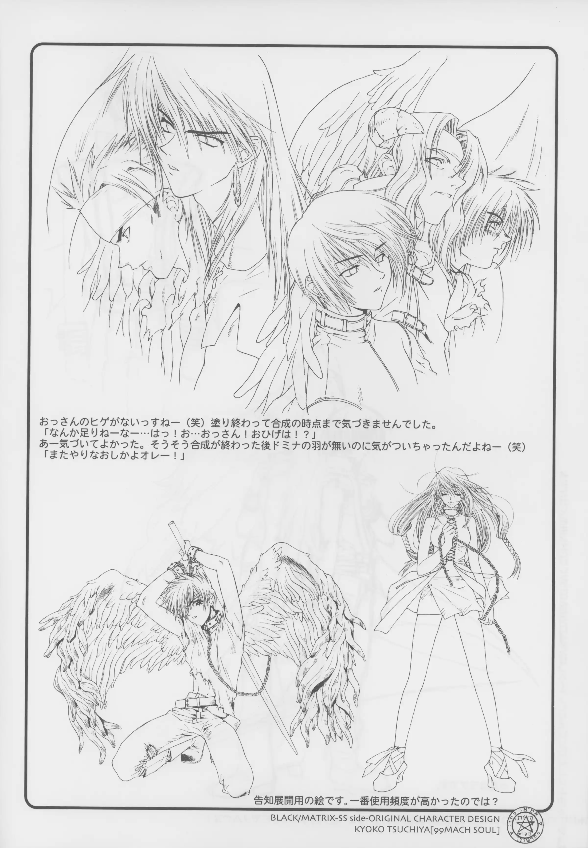 The first ten pages are all colour artwork; magazine promotional covers, phone card artwork, and zoomed in sections from the original Black Matrix cover art for Sega Saturn.