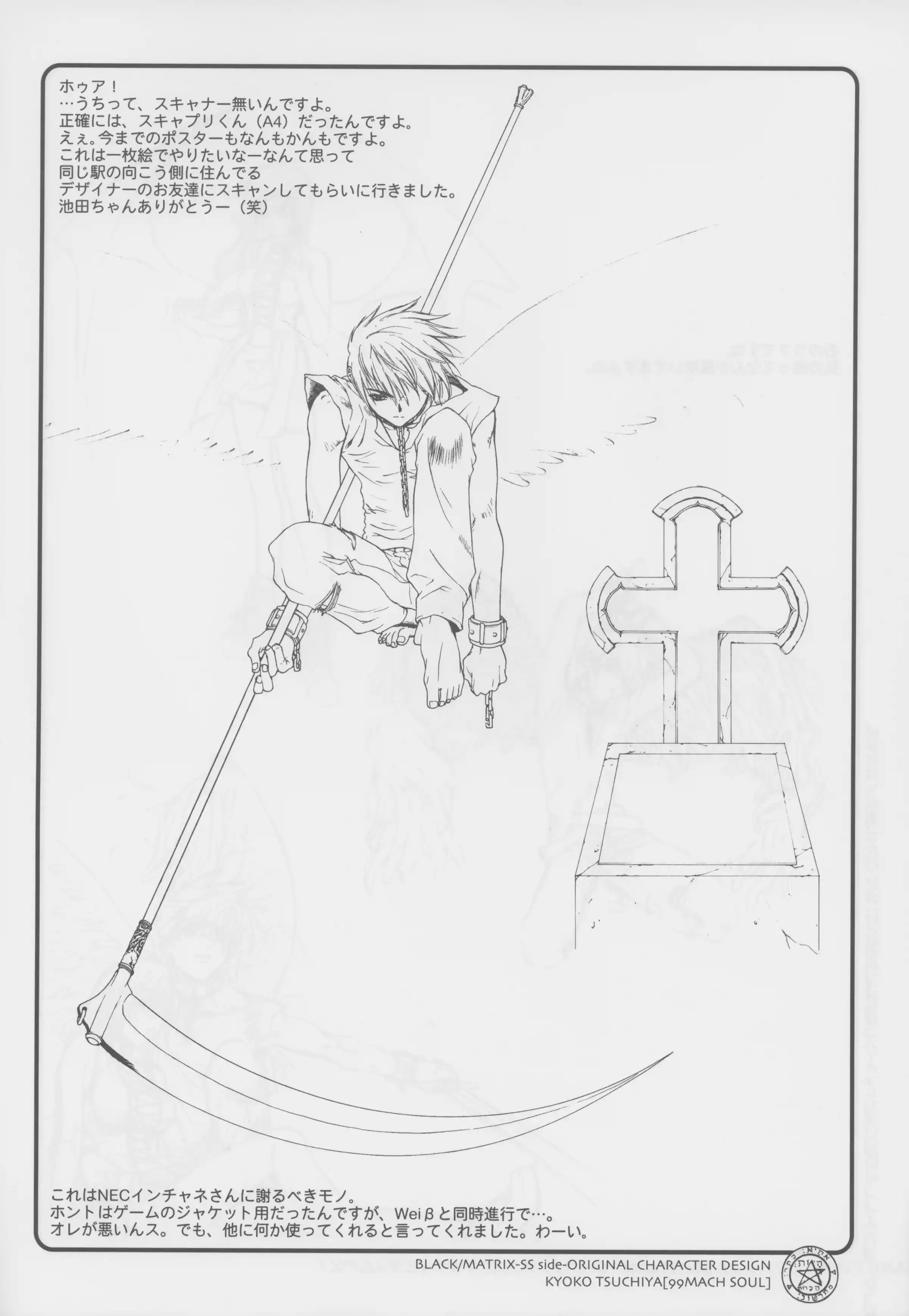 In the text below, she raises that this was intended to be Black Matrix's original cover art. Tsuchiya was doing this work along with Weiss and apologized to NEC Interchannel, perhaps because Abel is slightly off model and never uses a scythe in game.