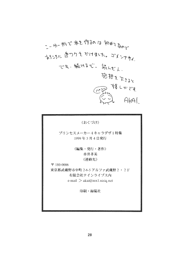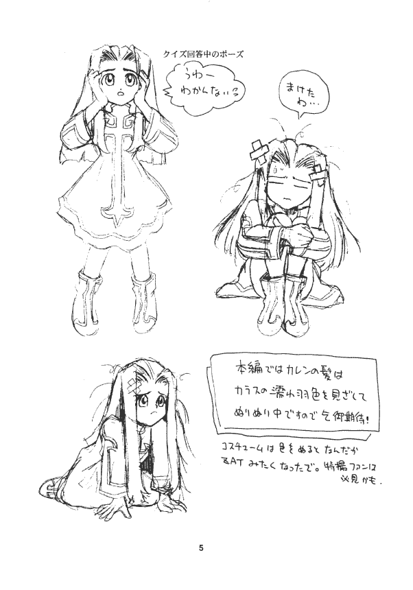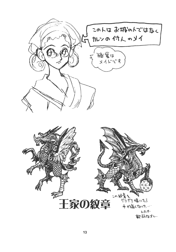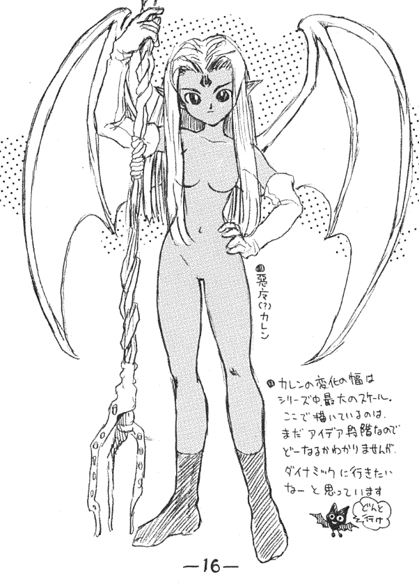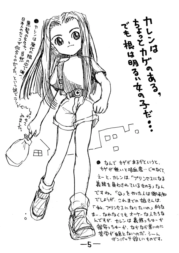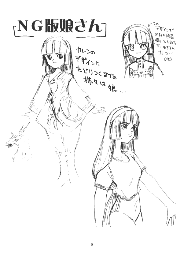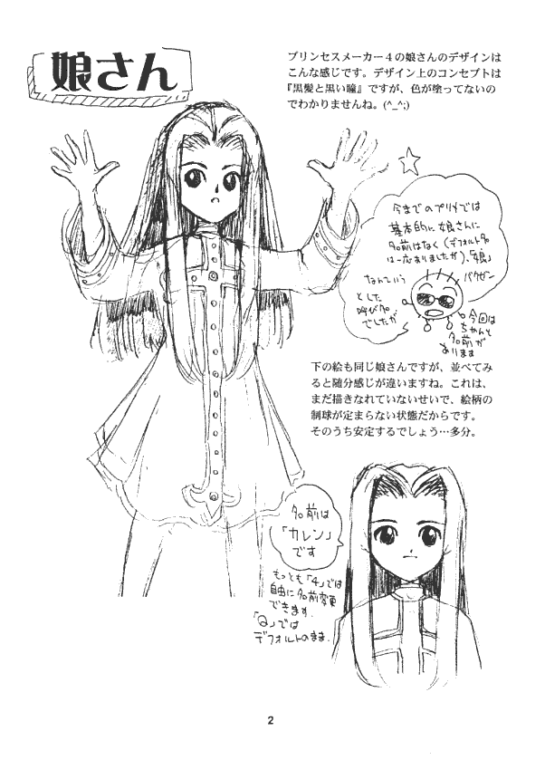 Though planned as the first in a series, there were no other explicitly named "character design" pamphlets made after this. Later works chose to focus on an urban Tokyo setting with art of the star child "Karen", who was to be the featured princess of this game.