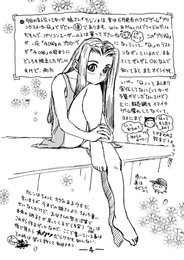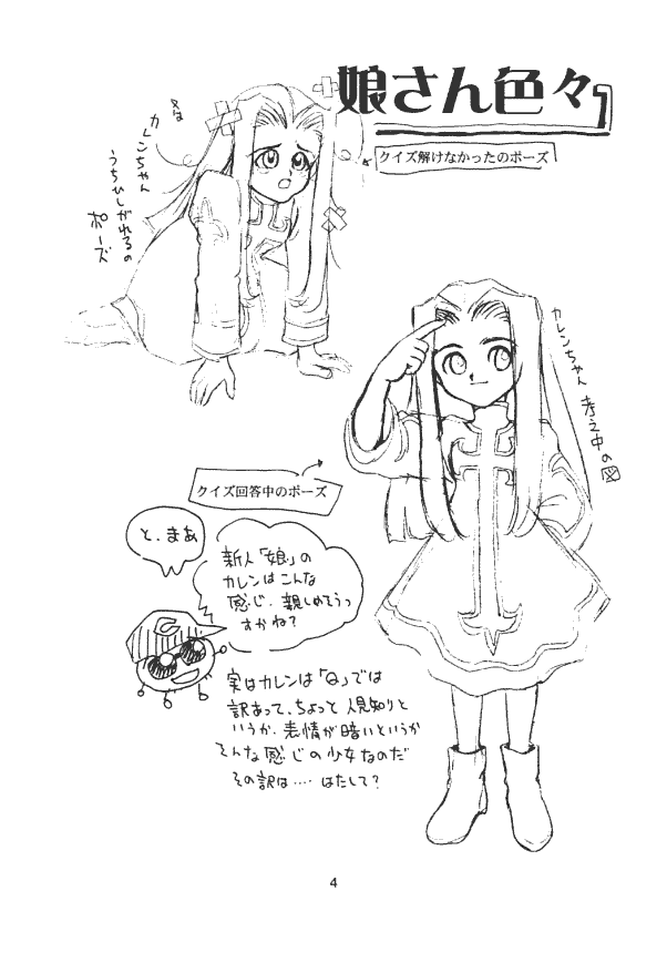 Additional designs of Karen were provided in the following month's doujin pamphlet on June 27th, given the overlong title of 『プリンセスメーカー 4 娘さん、デザイン中 ●カレンちゃん写真集 スタンバイ中だ号』.