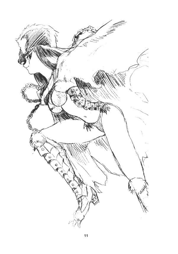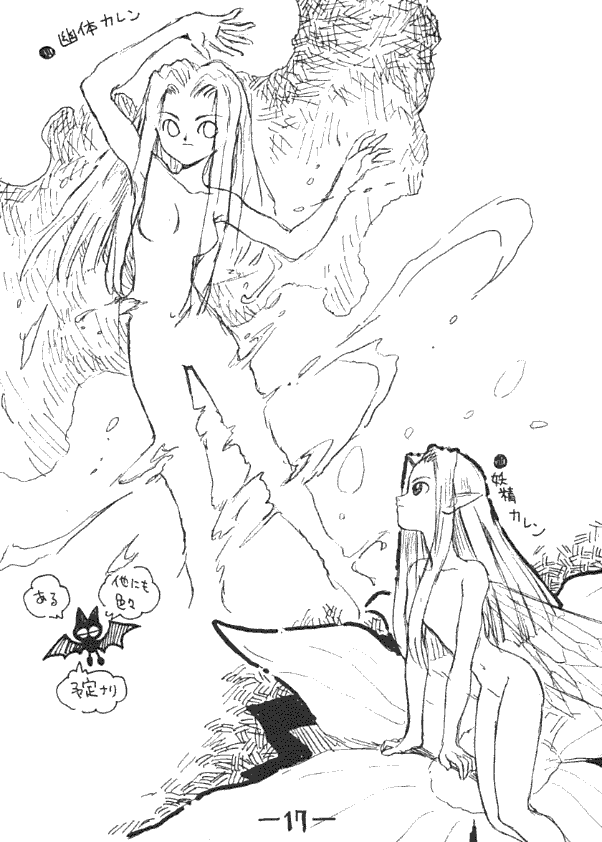 Three fantasy designs of Karen are reproduced below, introduced by the bat avatar. Unlike Kimiko Higuchi's avatar and Akai's avatar, this appears to be the bat avatar's last appearance in subsequent doujin.