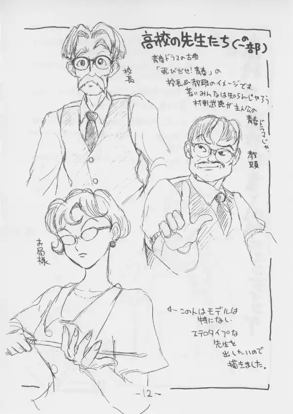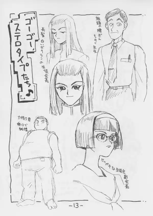This one focuses on the modern setting with rough ideas for characters, events and costumes. There are a number of fantasy elements interspersed through this one, much more so than in later previews and doujin for this game.