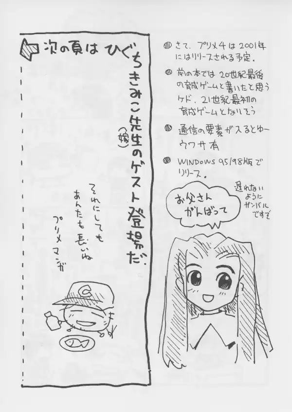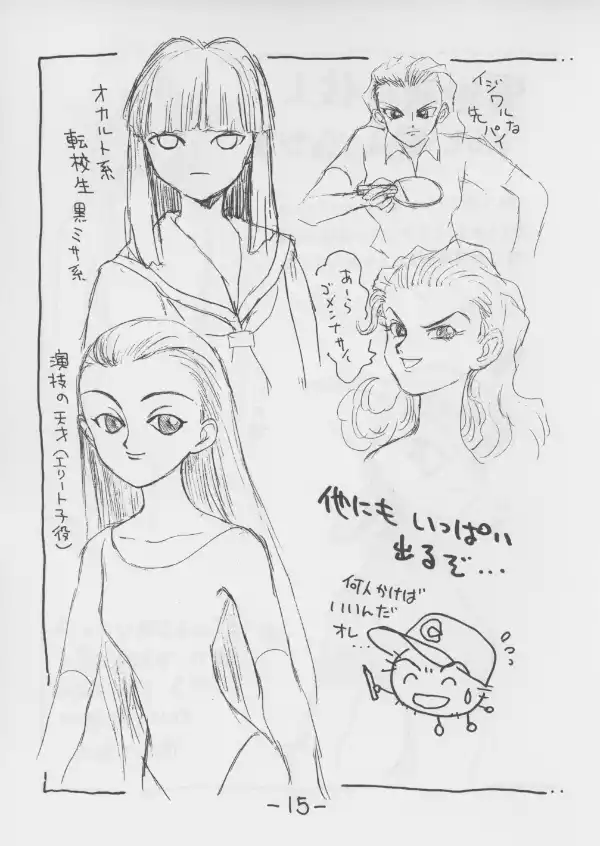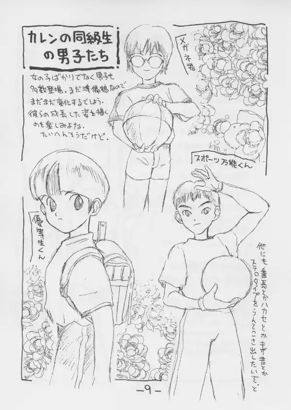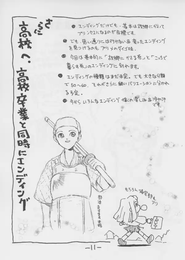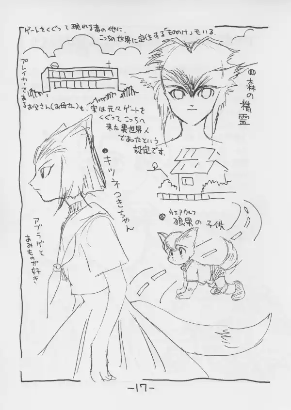 Unlike the other doujin and the 2000/2001 previews, this book goes beyond the elementary school phase of the game. It hints at later encounters in high school and the city with rivals, nature spirits, and visitors from other worlds posing as humans.