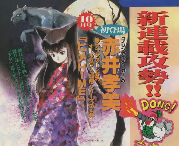 The Ninelives ヒメ HIME CD-ROM has been recently recovered, featuring lower-than-print resolution 400 pixel wide pages and a small collection of "classic" Mac icons. Unfortunately the Windows partition for this copy appears to be damaged. These recovered assets, along with the icons and any additional information from the enclosed README, will be uploaded to cover volumes 2 and 3 as bandwidth allows.