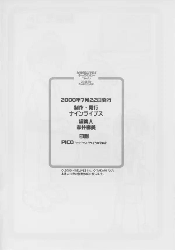 Given away on July 22, 2000, the Ninelives Character Book offers profiles of a few of the main and supporting characters across Ninelives computer games up until then.