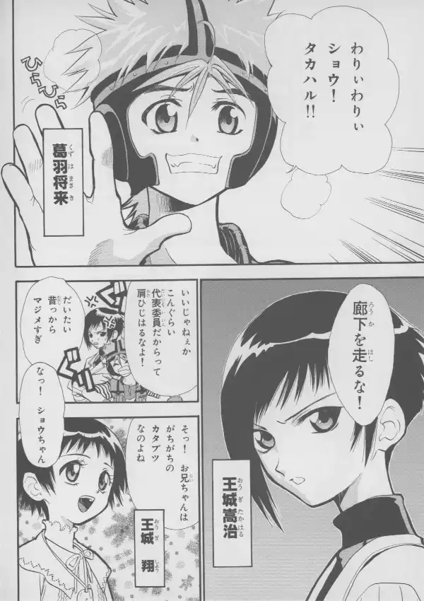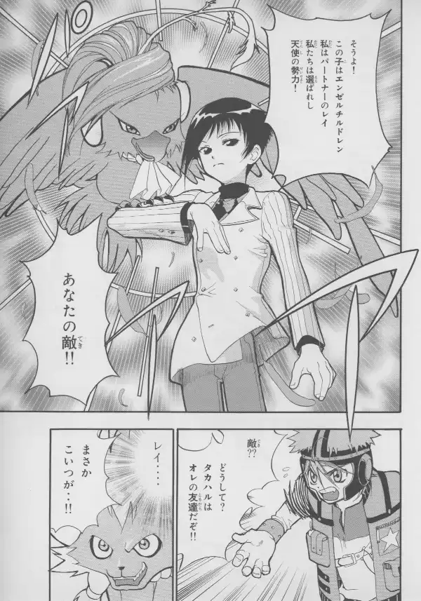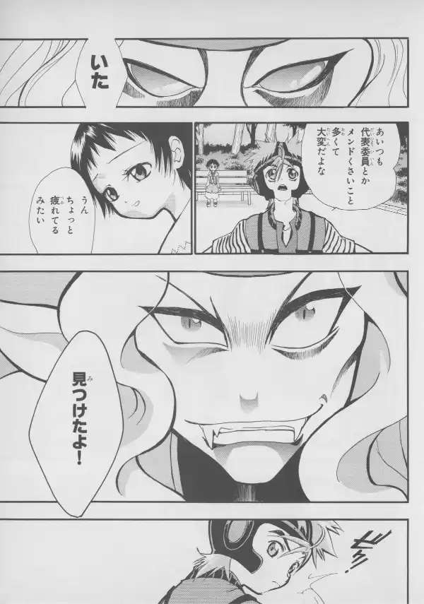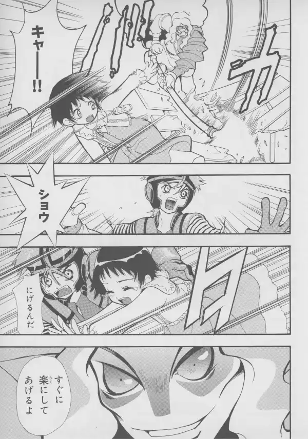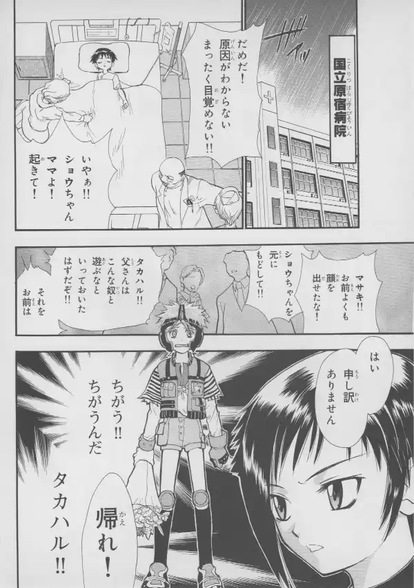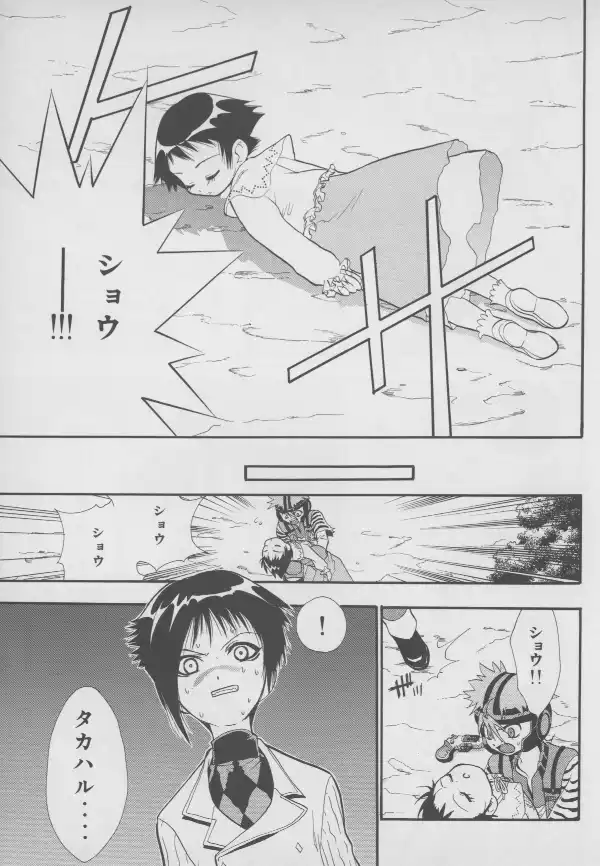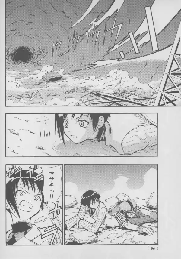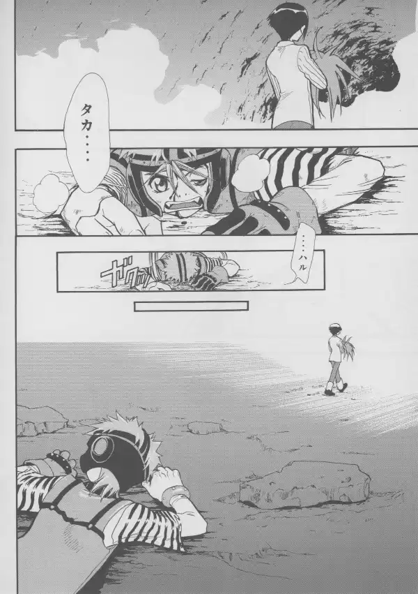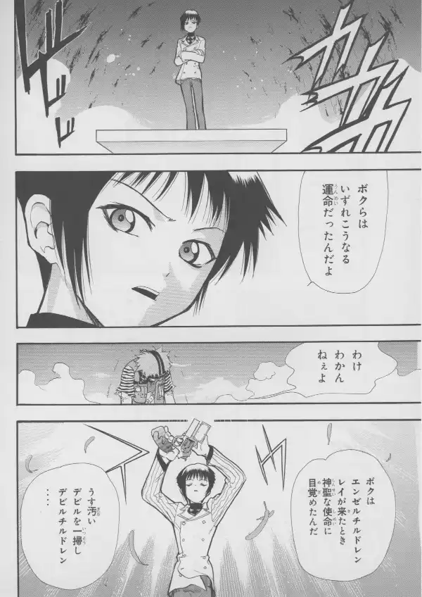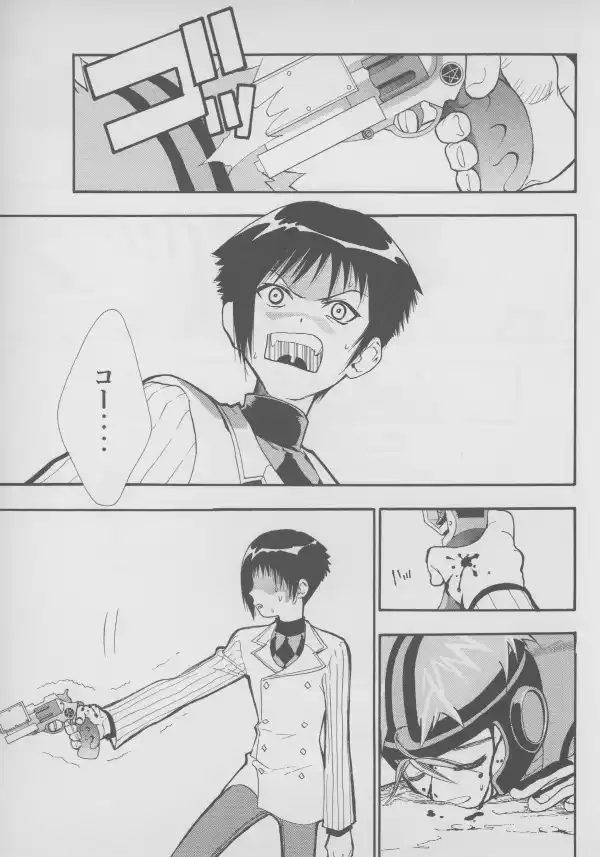While no Evangelion characters are to be found here, Masaki and Takaharu are well represented at their bloodiest, with Takaharu's sister Shou standing between them.