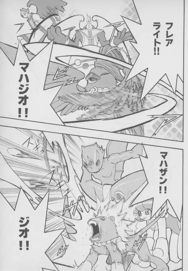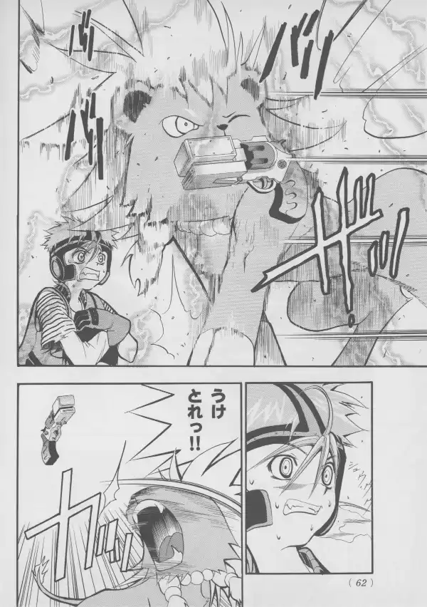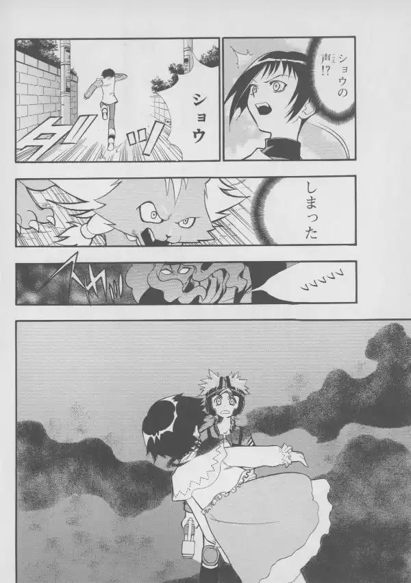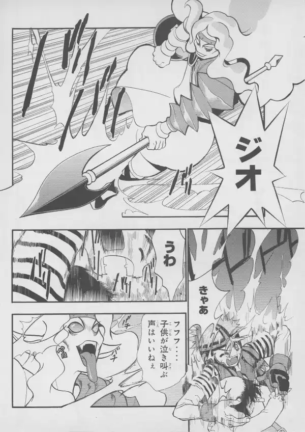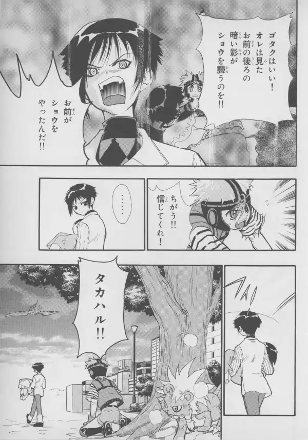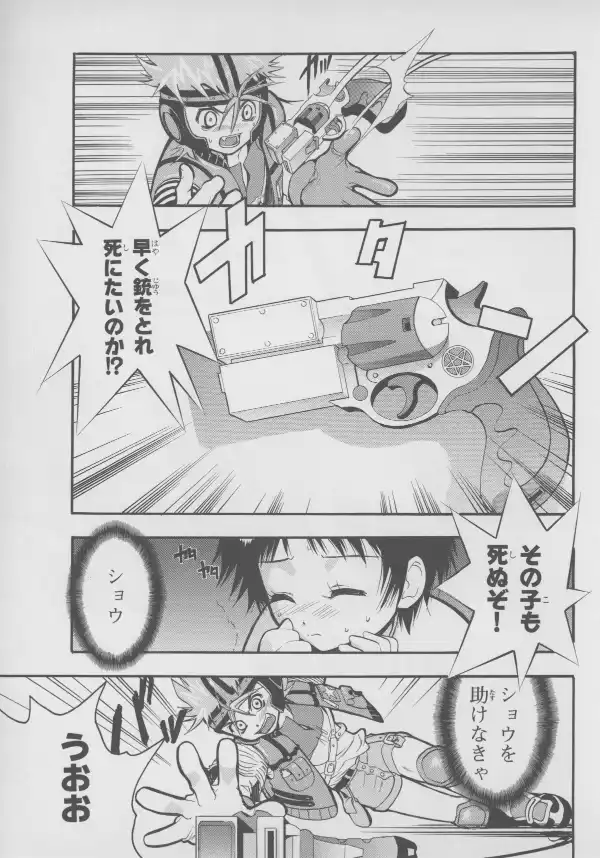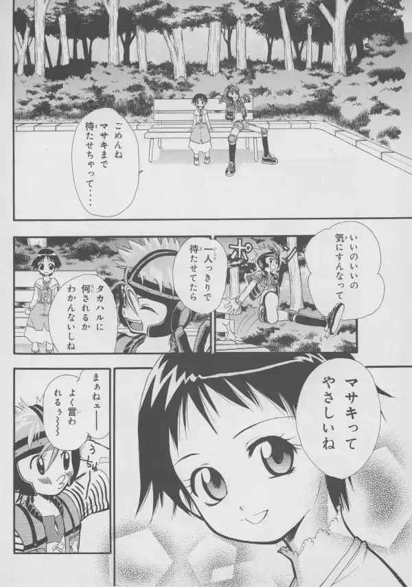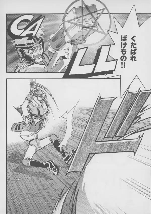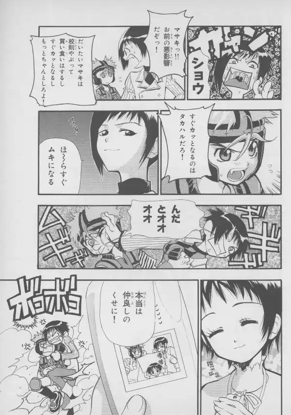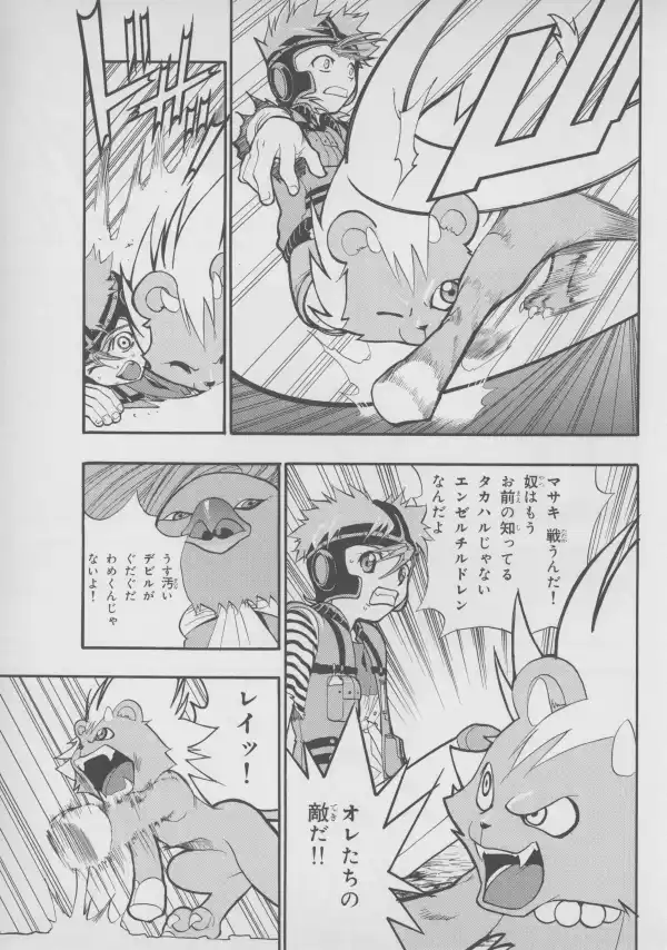 While no Evangelion characters are to be found here, Masaki and Takaharu are well represented at their bloodiest, with Takaharu's sister Shou standing between them.